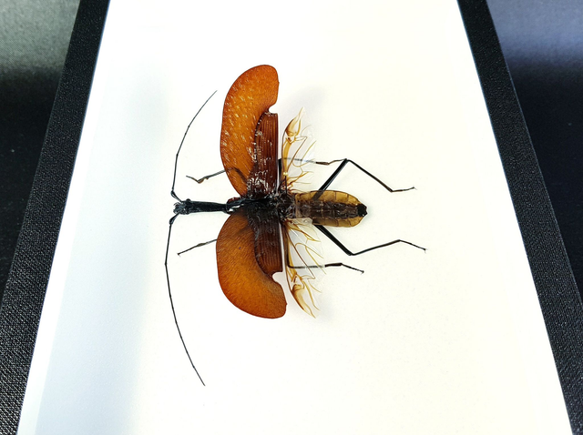 Coléoptère de la famille des Carabidae originaire d'Indonésie piqué dans un cadre à fond émalène blanc.