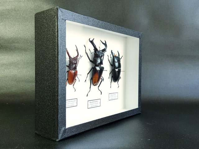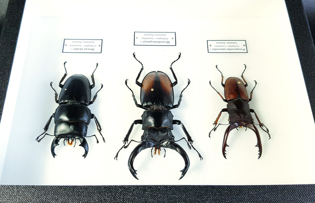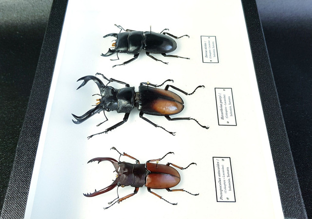 Espèces : Prosopocoilus astacoides ; Hexarthrius parryi ; Dorcus alcides